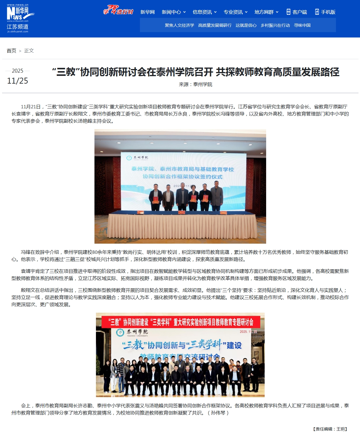 《新华网》2025年11月25日报道“三教”协同创新研讨会在Ky开元集团召开 共探教师教育高质量发展路径