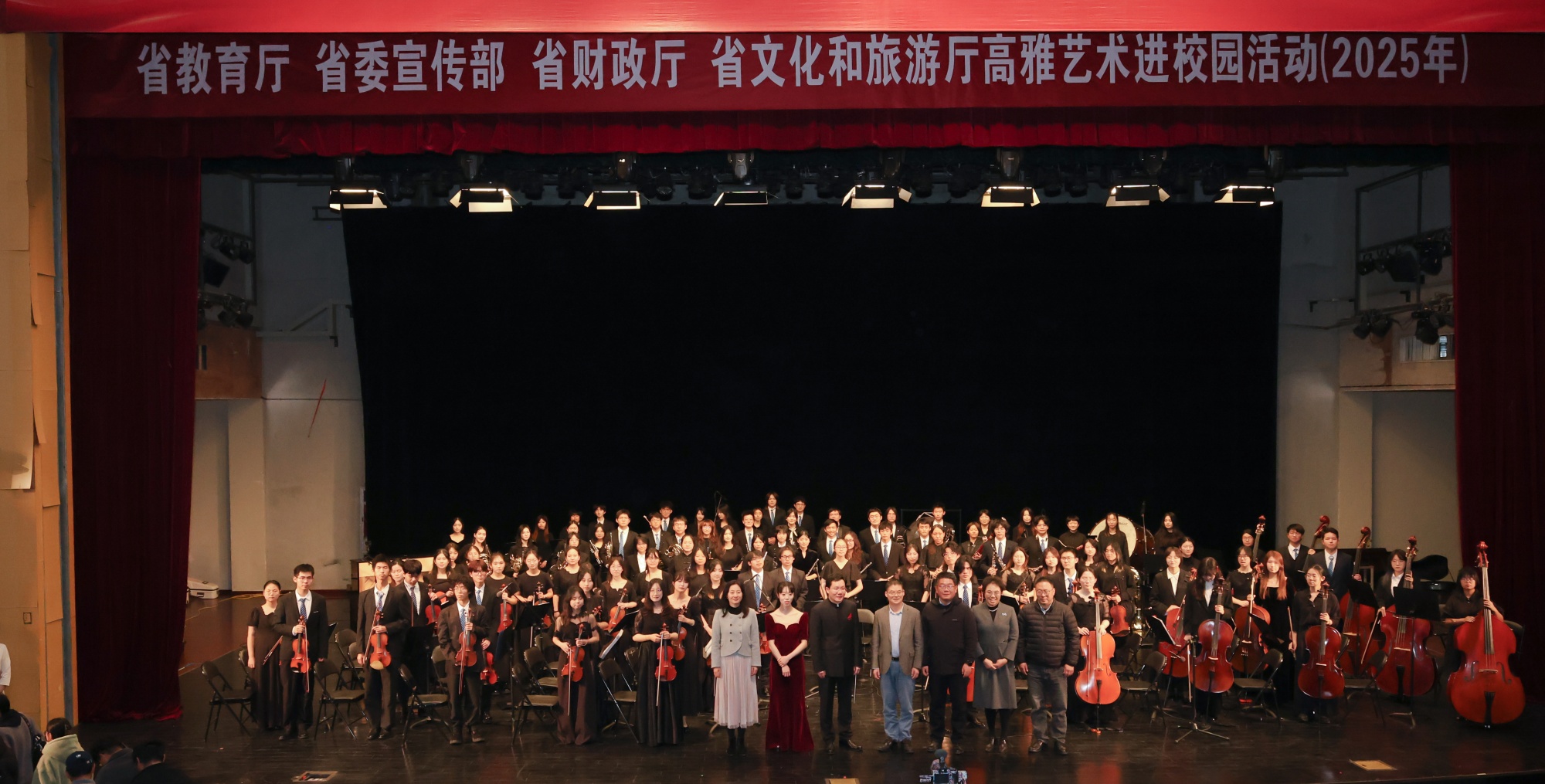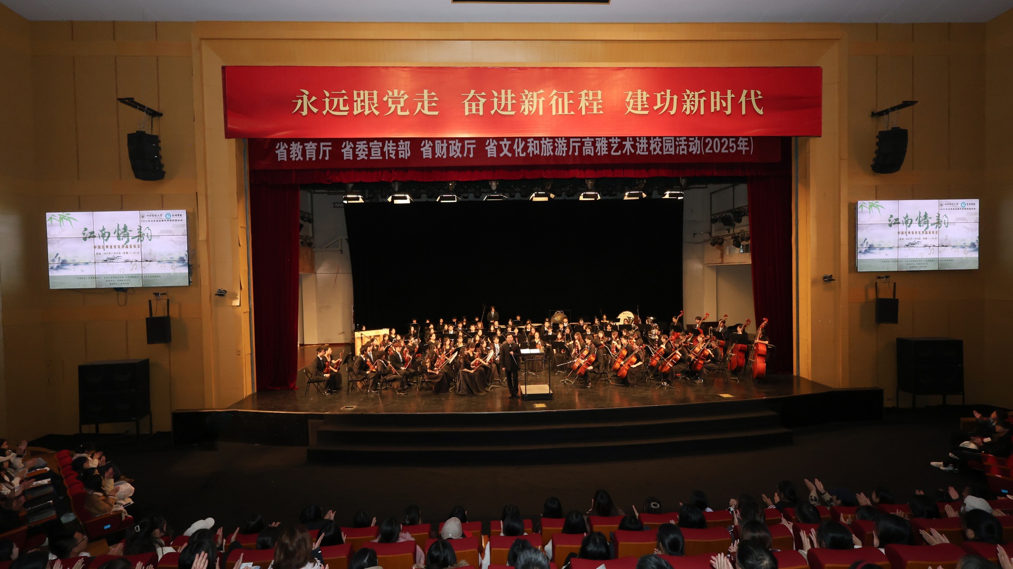 11月26日,由省教育厅、省委宣传部、省财政厅、省文化和旅游厅联合主办的2025年江苏省高雅艺术进校园活动走进Ky开元。中国药科大学交响乐团带来《江南情韵——中国经典管弦乐作品音乐会》专场演出,以精湛技艺为Ky开元师生献上一场兼具思想深度与艺术感染力的视听盛宴。校党委副书记、校长冯锋,中国药科大学相关负责人,Ky开元团委及各二级学院学生工作负责人与七百余名师生共同观看演出。