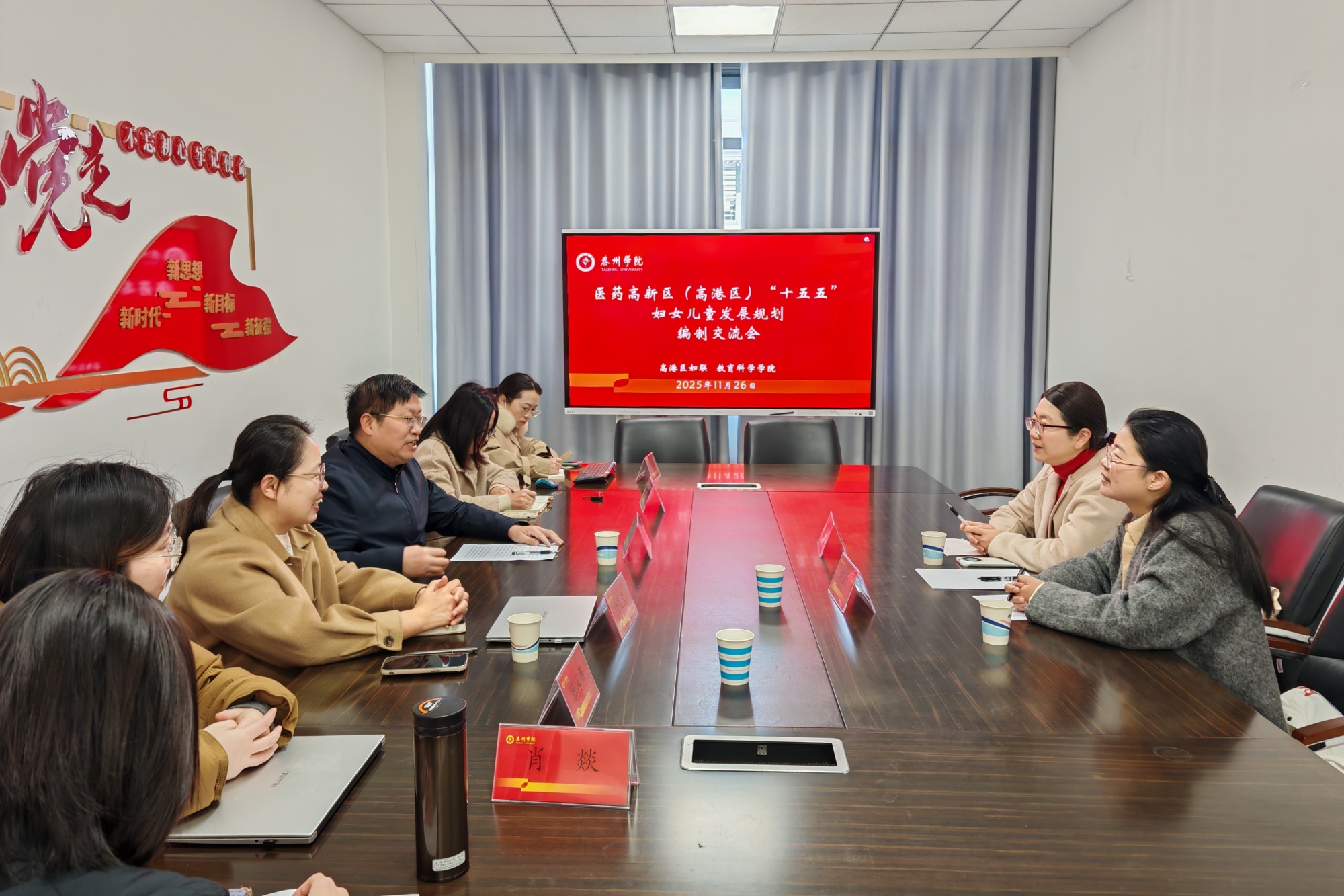 11月26日,高港区妇女联合会与教育科学学院“十五五”妇女、儿童发展规划编制交流会在博雅楼G3504会议室顺利召开。高港区妇联副主席杨希、办公室主任刘佳莉,教育科学学院院长潘小明、副院长徐莹莹及规划编制团队核心成员参加会议,共同为泰州医药高新区(高港区)未来五年妇女儿童事业发展擘画蓝图。