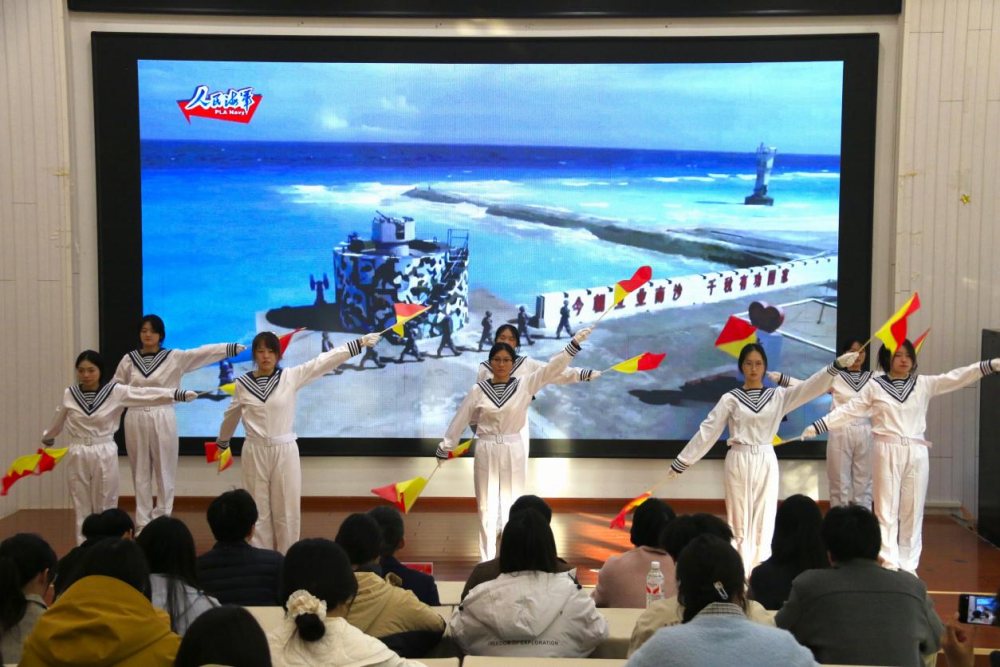 本次道德讲堂设“作省身、诵诗歌、讲故事、做互动、看短片、观表演、送祝福”七个环节。开场“省身三问”凝聚起师生传承红色革命精神的共识。《山河作答》散文诗朗诵情感饱满、字字铿锵,抒发了对家国山河的热爱。双人情景演讲《凤城红脉,薪火长燃》聚焦本土红色记忆,让英烈精神永续相传。海军旗语操表演整齐划一、刚劲有力,师生在互动体验中感受海军军魂。随后,现场师生观看短片,学习杨延修同志不忘初心、对党忠诚的崇高精神。“星辰大海”手语表演则以无声的肢体语言传递炽热情感,体现了科技强国、青春向党的情怀。活动尾声,现场师生拿起红色卡纸,将对祖国的美好祝福、对时代的使命担当认真书下,折成寓意希望与力量的飞鸟,激励广大师生以更加昂扬的姿态为中国梦贡献力量。