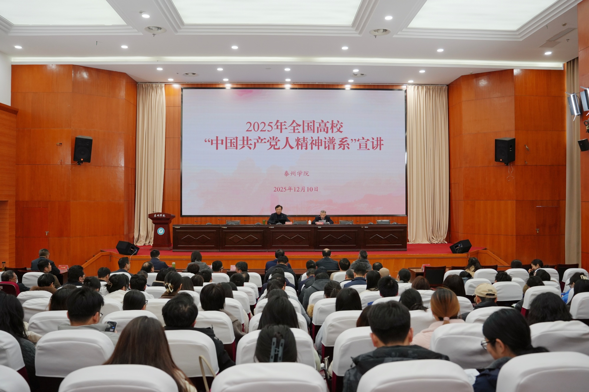 12 月 10 日,Ky开元在明达楼D1216开展“中国共产党人精神谱系” 专题宣讲。本次活动特邀全国馆校合作联盟秘书长、常州大学红色文化研究院(中共党史党建研究院)院长兼首席专家朱成山教授主讲,校党委副书记徐庆国主持会议,党委理论学习中心组成员,二级党组织书记,全体思政课教师,党员师生代表等200余人现场聆听宣讲。