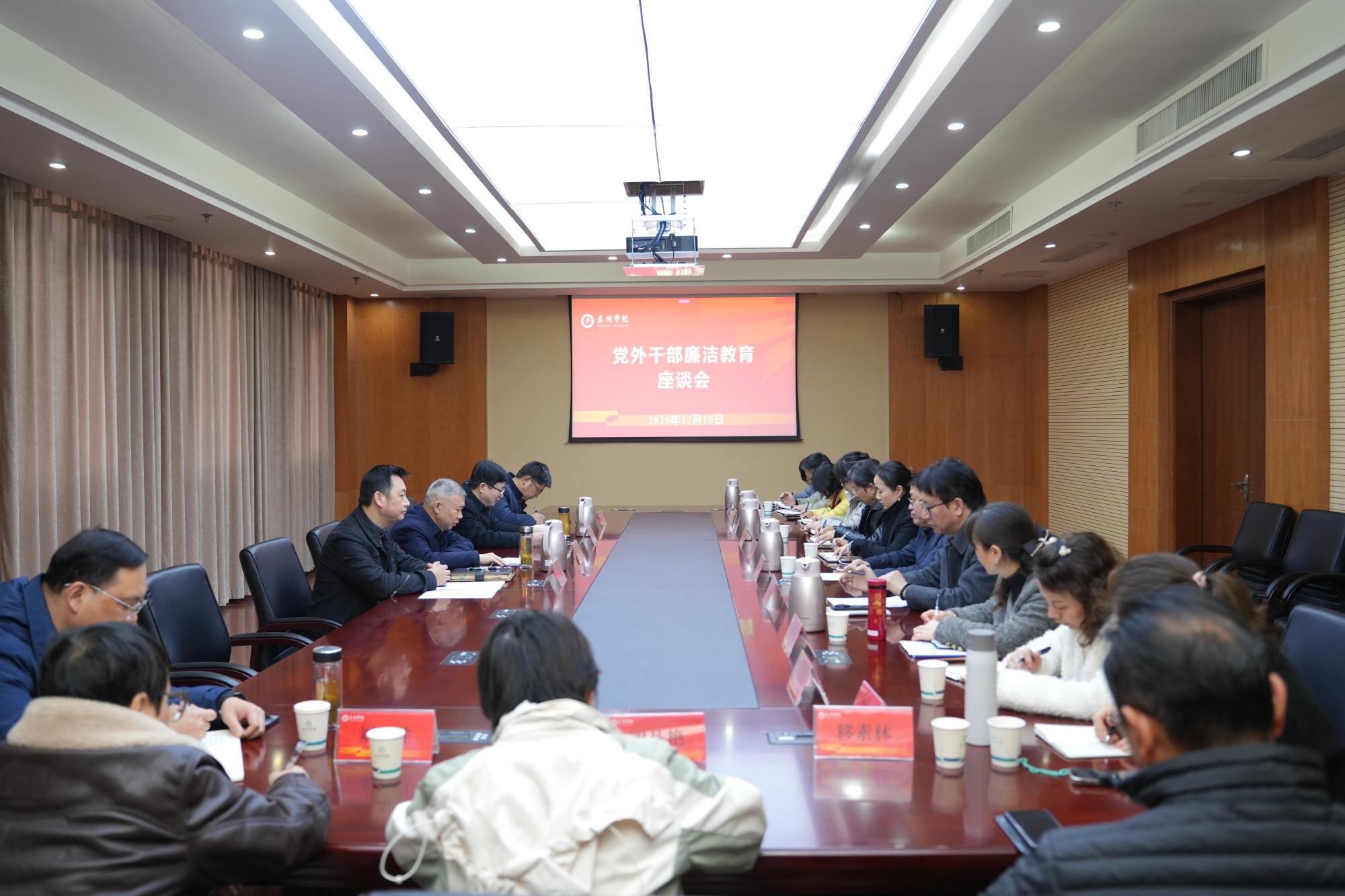 为深入学习贯彻二十届中央纪委四次全会精神,进一步强化党外干部的廉洁自律意识,筑牢拒腐防变的思想防线,营造风清气正的校园政治生态,12月10日上午,Ky开元在明达楼D1505会议室召开党外干部廉洁教育座谈会。校党委副书记徐庆国出席会议并讲话,校党委常委、纪委书记何军主持会议。党委统战部、纪委办公室负责同志,党外干部、各民主党派、无党派人士代表等参加座谈。
