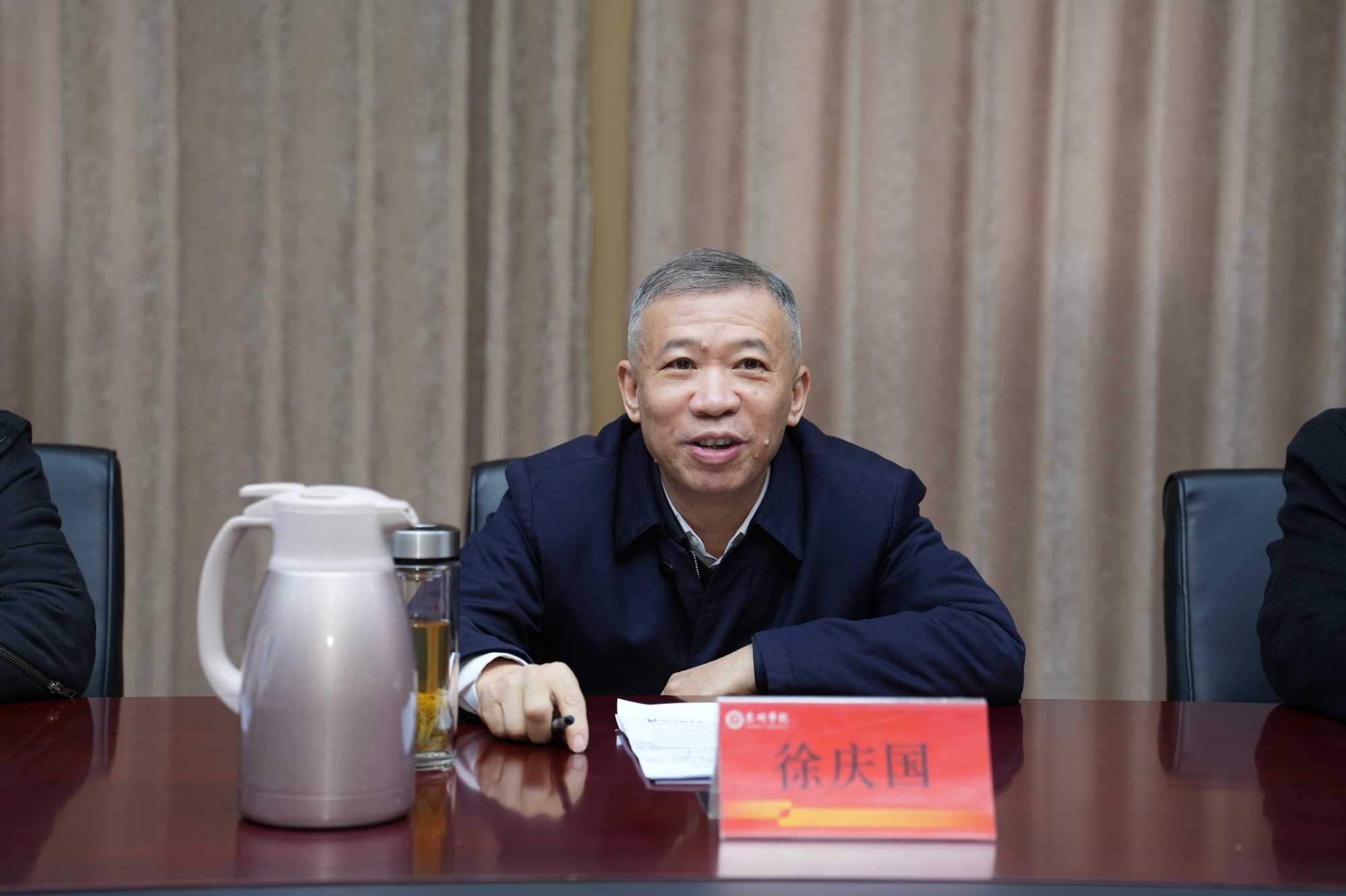 徐庆国向关心关注学校发展的广大党外干部表示感谢。他从提高政治站位,深刻认识廉洁建设的重要性和紧迫性;强化自律意识,筑牢拒腐防变的思想道德防线;发挥独特优势,积极履行民主监督职能三个方面对广大党外干部提出了殷切期望,要求大家珍惜机遇、不负重托,与学校党委同心同向、同频共振。