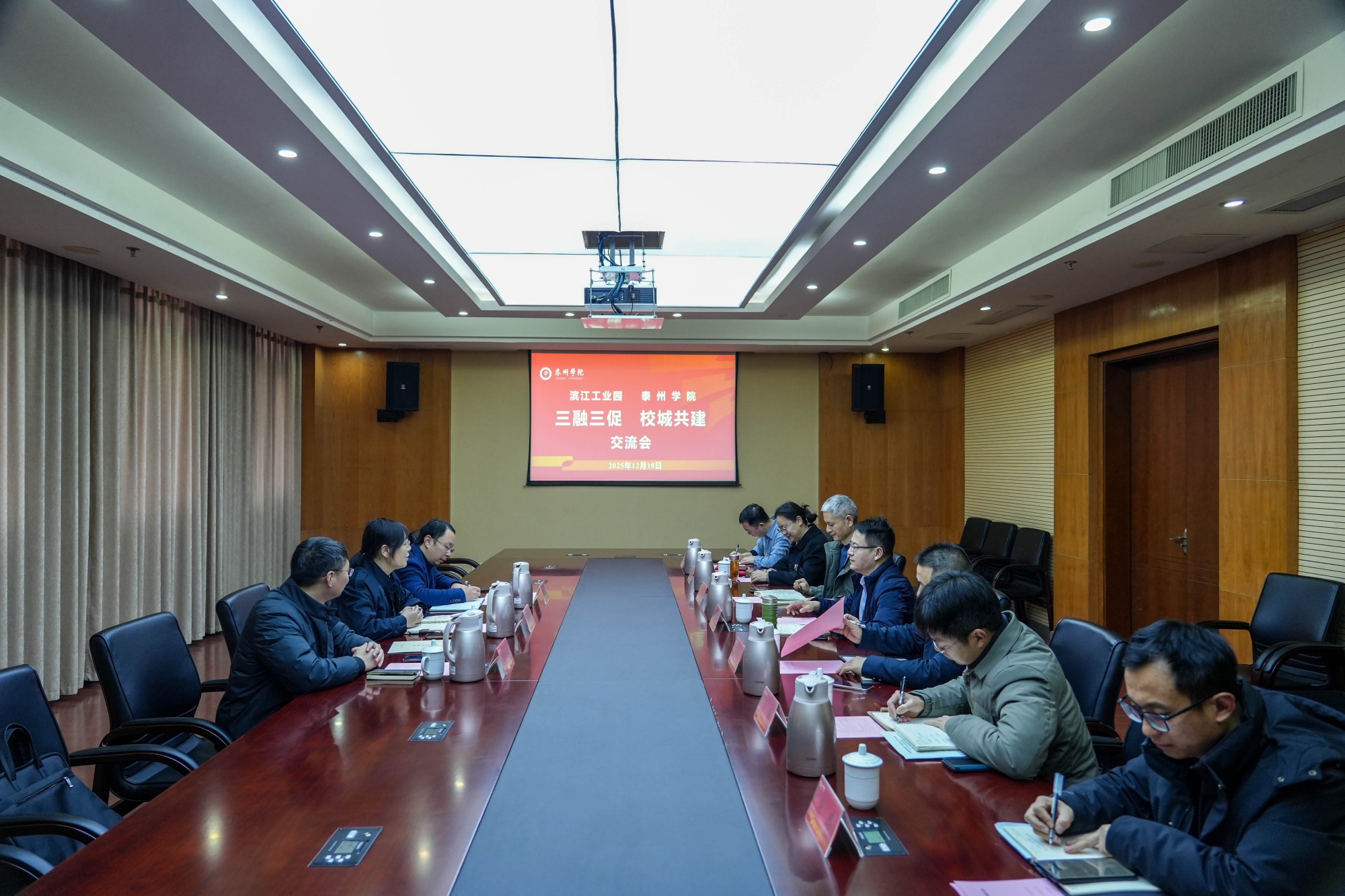 为深化“三融三促”校城共建工作,12月18日上午,泰州医药高新区(高港区)滨江工业园党工委委员、管理办公室副主任周骏图一行来Ky开元交流。校党委常委、副校长汤艳峰等领导参加。