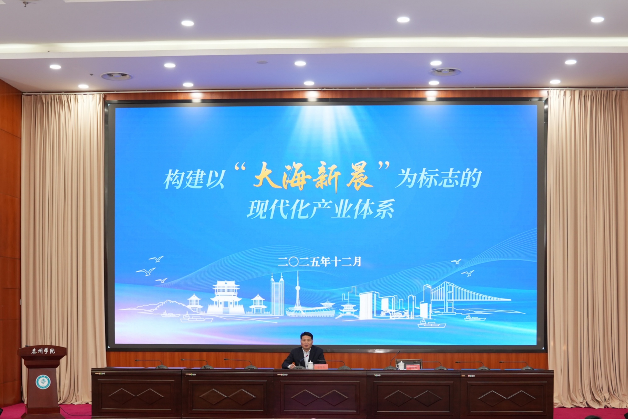 姜冬冬强调,站在收官“十四五”、谋划“十五五”的关键节点,泰州正突出链群为要、实体为基,夯实发展“基本盘”,坚持大抓经济、大抓产业、大抓项目,围绕“大海新晨”聚焦发力,不断提升产业核心竞争力和市场占有率,加快实现“三个万亿”目标。突出创新引领、融合赋能,增强发展“原动力”,深入推动科技创新与产业创新深度融合,在搭建平台、健全体制机制、强化企业创新主体地位、打通堵点卡点等方面下功夫,实现创新链与产业链的无缝对接。突出融入上海、融入苏南,打开发展“新空间”,重点推进科创、产业、开放、供需、民生等方面的协同,加快过江通道建设,推进跨江融合发展,不断凸显泰州区位优势,持续放大产业协同效应,进一步拓展发展空间。突出“到泰州、泰周到”,营造发展“好环境”,加快建设青年和人才友好型城市,展现出吸引人才的满满诚意。