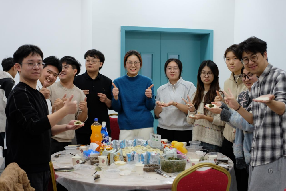 活动现场暖意融融,同学们分组开展包饺子活动,既有速度比拼的默契协作,也有创意造型的巧思雕琢,形态各异的饺子饱含师生温情。随后,师生围坐分享亲手制作的水饺,温热滋味驱散冬日寒意,拉近心灵距离。互动游戏环节将氛围推向高潮,定制蛋糕的惊喜登场引发阵阵欢呼,师生共同分享甜蜜、参与趣味游戏,现场处处洋溢着蓬勃的青春朝气,欢声笑语间尽显相聚的喜悦与惬意。