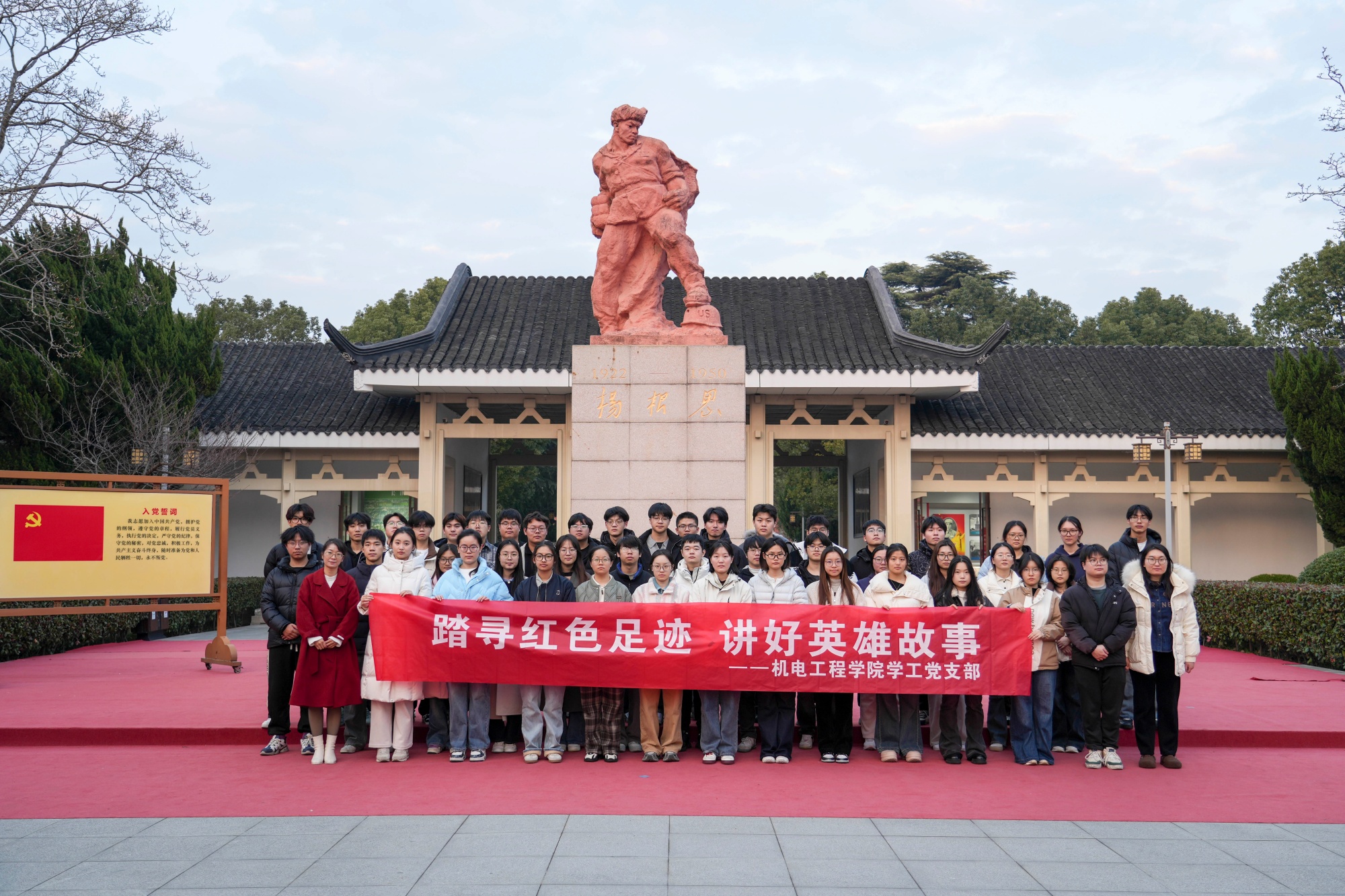 为深入传承红色基因,筑牢理想信念根基,12月19日,机电工程学院学工党支部联合泰州团市委和国网泰兴供电公司组织党员及入党积极分子赴泰兴市红色教育基地,以“踏寻红色足迹,讲好英雄故事”为主题开展党日活动。活动通过沉浸式、互动式的教育实践,引导全体成员在追寻历史足迹中感悟初心使命,在英雄精神中汲取奋进力量。