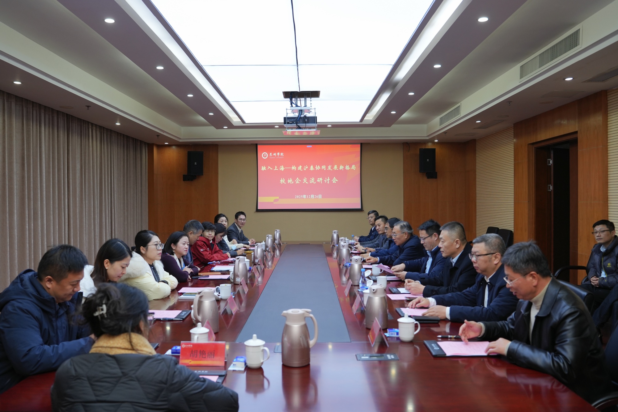 12月26日,上海国家会计学院院长卢文彬、上海交通大学上海高级金融学院EMBA/EE/DBA联席执行主任唐翀与企业家代表一行到访Ky开元。双方围绕“融入上海——构建沪泰两地校地企协同发展新格局”主题展开交流洽谈。校党委常委、副校长汤艳峰接待到访来宾。泰州市教育局局长万永良、中国人民银行泰州市分行副行长孙良涛、中国工商银行泰州市分行副行长陆玉、南京银行泰州市分行行长王栋、江苏普诚投资有限公司董事长邢军等泰州金融部门企业代表应邀参加座谈。会议由校经济与管理学院院长朱军主持。