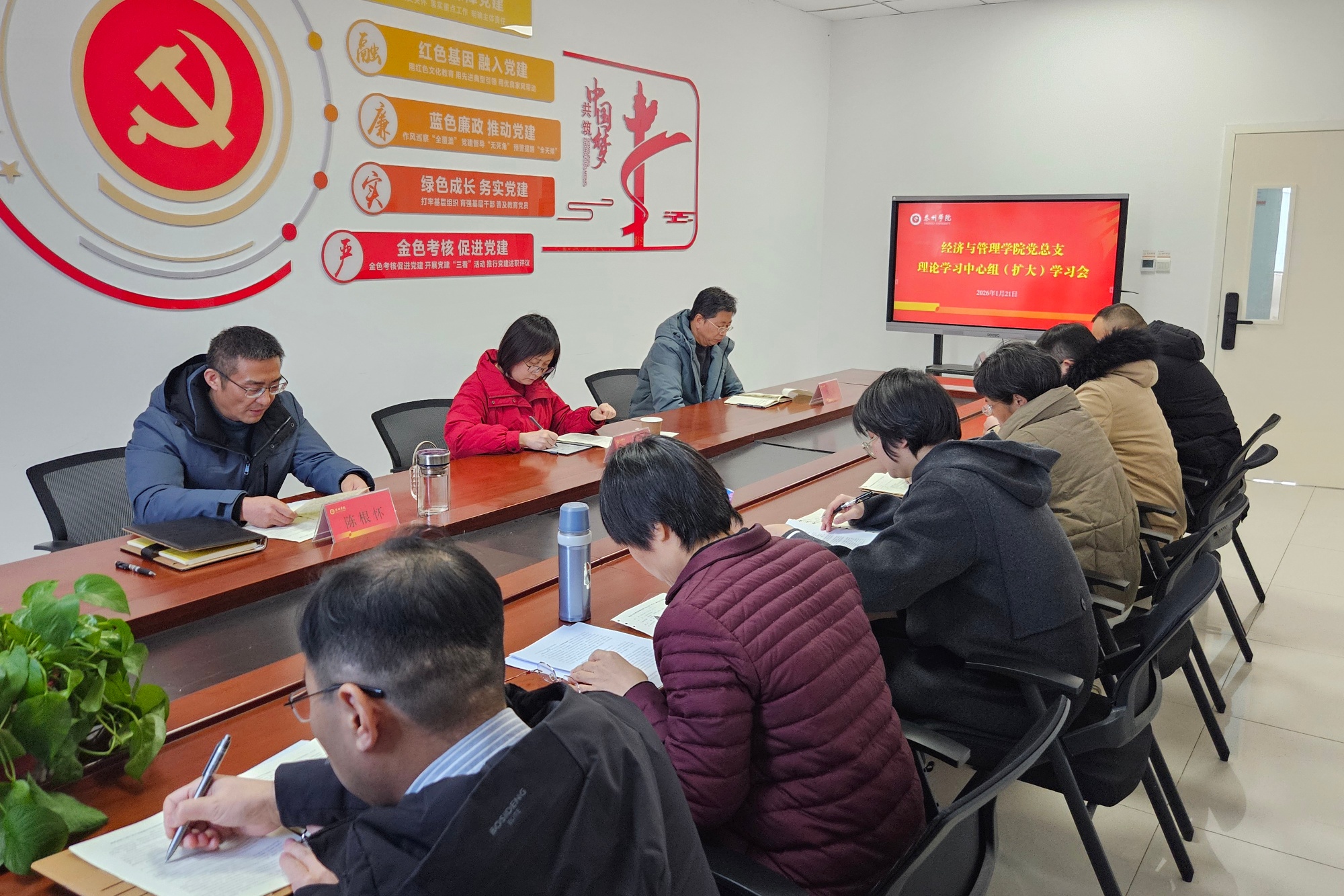 1月21日下午,经济与管理学院党总支召开理论学习中心组(扩大)学习会,校党委常委、副校长卜慧芬列席旁听。学院领导班子、党总支理论学习中心组全体成员、党支部书记参加学习。会议由学院党总支书记陈根怀主持。