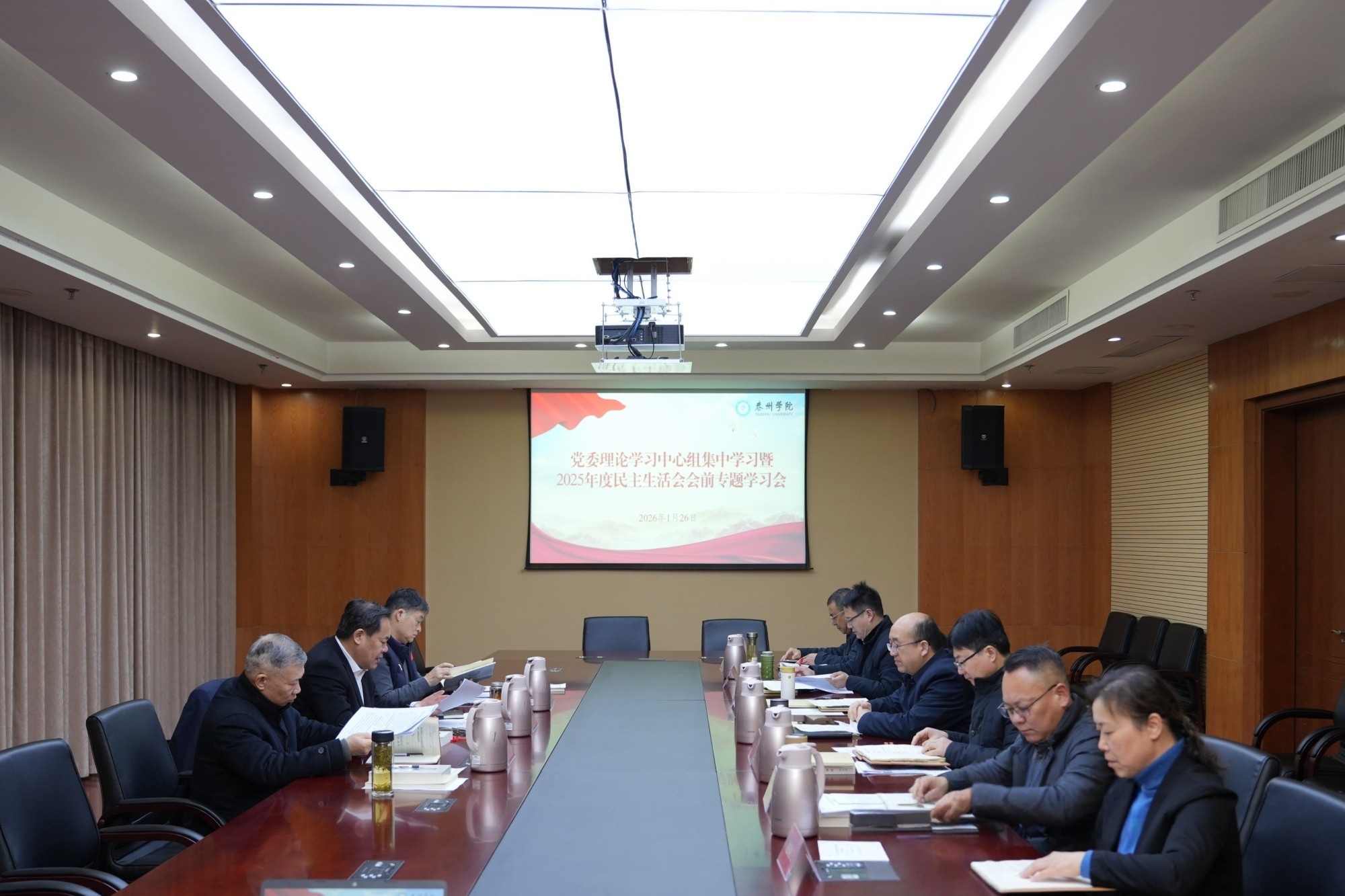 1月26日,学校召开党委理论学习中心组2026年第1次集中学习暨2025年度民主生活会会前专题学习会。会议集中学习了重要论述和文件精神,通报了民主生活会意见建议征集情况,开展了交流研讨,为高质量开好2025年度民主生活会打牢思想基础。会议由党委书记徐向明主持。