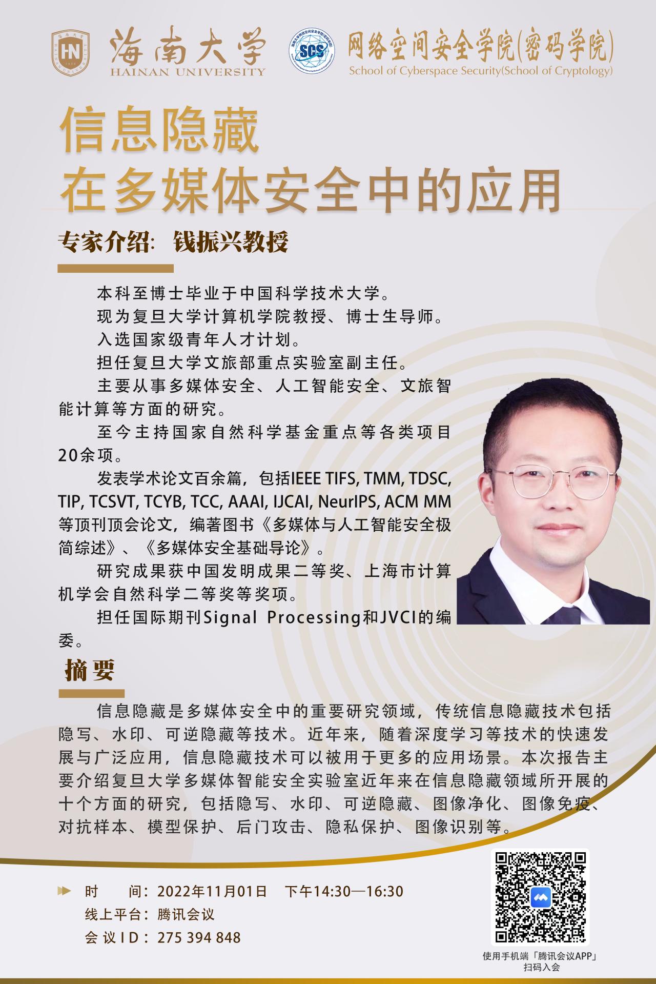 【能力提升之大培训】信息隐藏在多媒体安全中的应用 - 钱振兴
