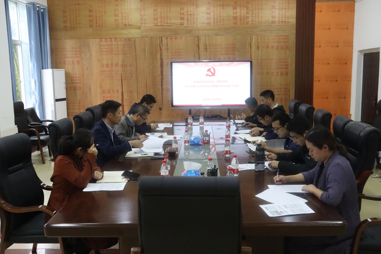2021年11月23日,必赢线路检测3003召开理论学习中心组(扩大)会议,专题学习传达党的十九届六中全会精神。学院领导班子成员、党委委员、各系室中心负责人等参加了学习会议。会议由学院党总支书记陈广锐主持。