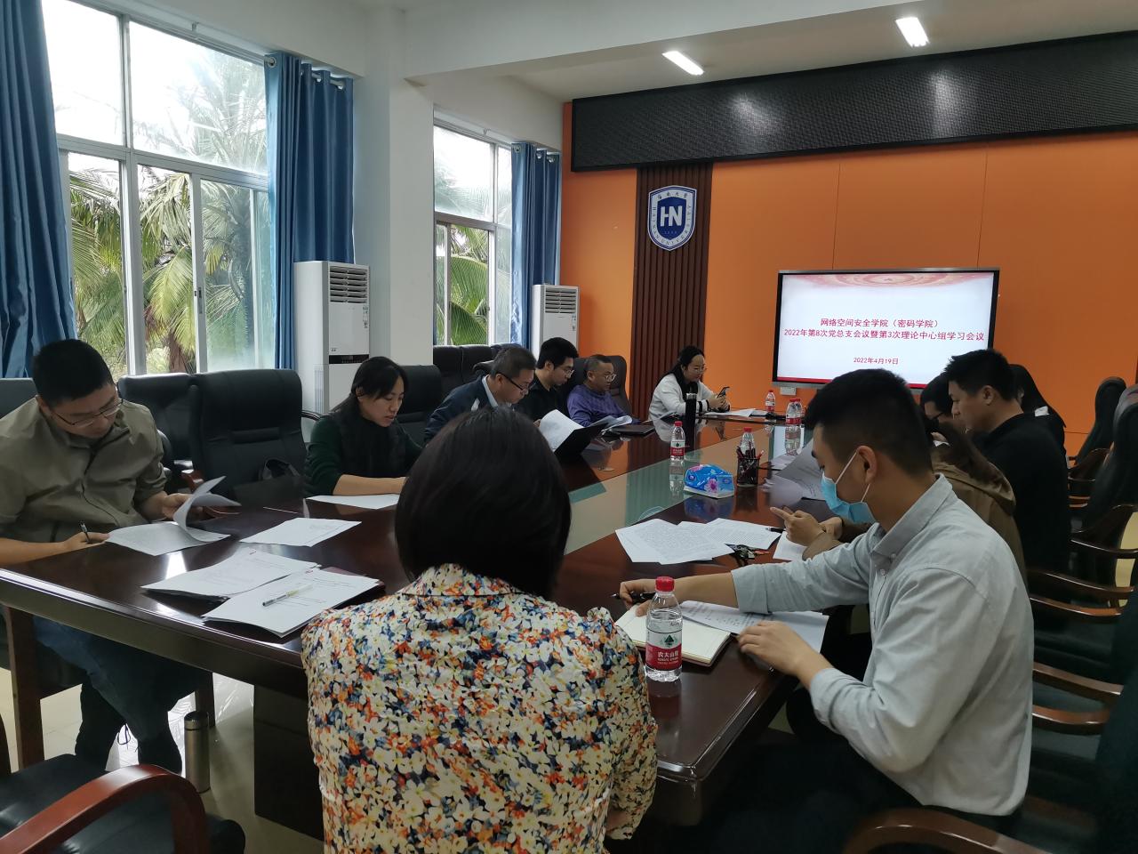 4月19日上午,必赢线路检测3003党总支召开理论学习中心组会议,传达学习习近平总书记考察海南时的重要讲话精神。学院党总支书记陈广锐、执行院长曹春杰、副院长周晓谊、张殿、党总支委员、党支部书记及各系室中心负责人参加了学习。会议由副院长周晓谊主持。