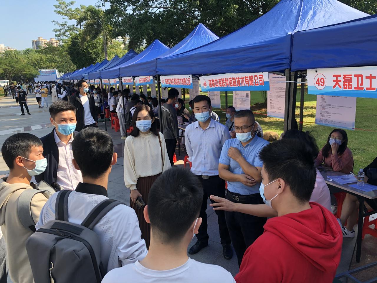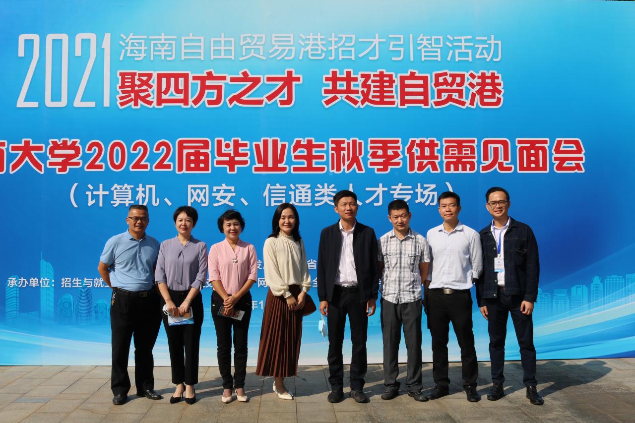 为了进一步搭建用人单位和毕业生供需交流平台,促进学生就业工作,2021年11月14日上午9:00,由海南省人才资源开发局(海南省就业局)与必赢线路检测3003no1联合主办,招生就业处、必赢线路检测3003、计算机科学与技术学院、信息与通信工程学院承办的海南自由贸易港招才引智活动——必赢线路检测3003no12022届毕业生秋季供需见面会(网安、计算机、信通类人才专场)在必赢线路检测3003no1三号教学楼前广场举行。三个学院一千余名毕业生参加了双选会。招生与就业处副处长张婷,必赢线路检测3003党总支书记陈广锐、计算机科学与技术学院院长杨天若、党委副书记(主持学院党委工作)王红英、信息与通信工程学院党委书记蒙秋妍等学院领导来到现场与用人单位和学生交流。