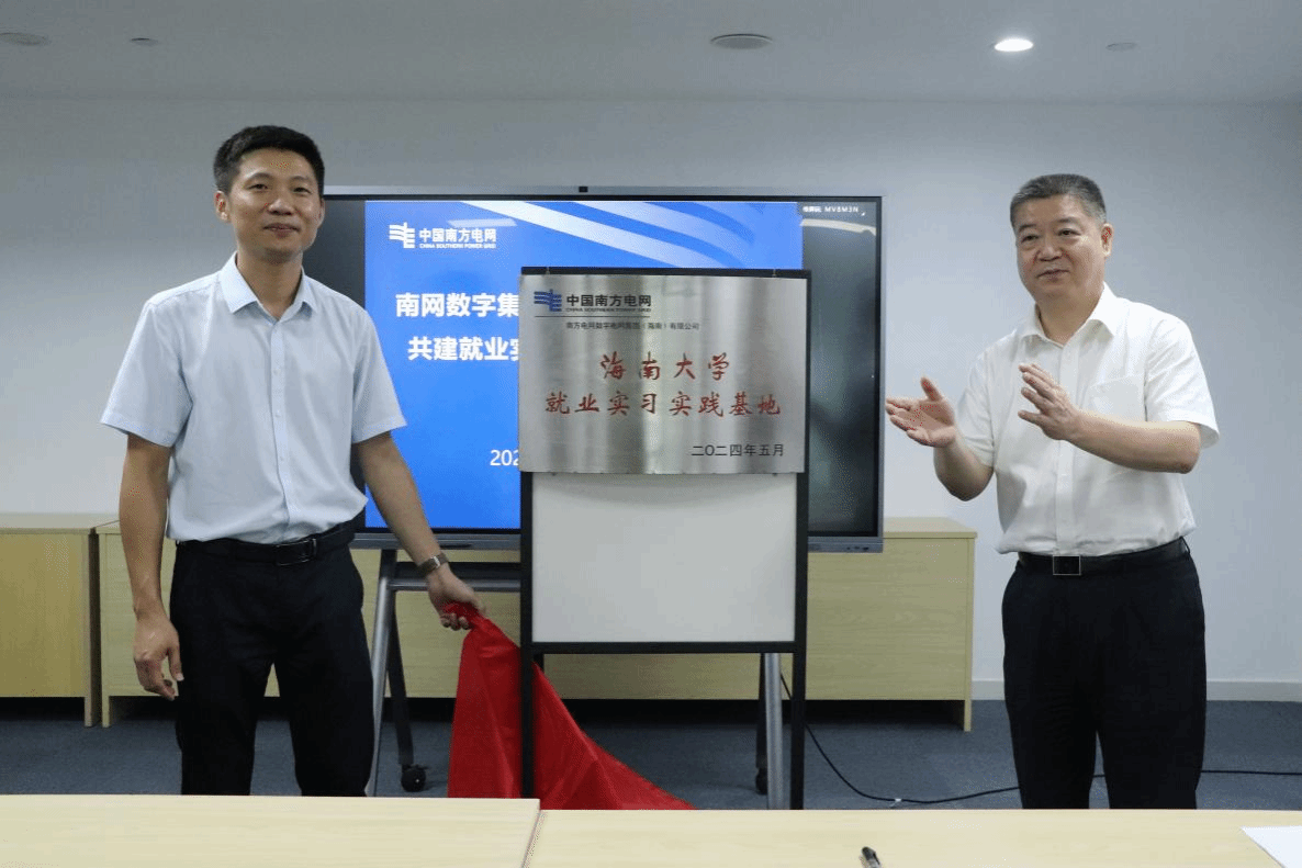 5月31日,必赢线路检测3003no1与南方电网数字电网集团(海南)有限公司举行共建就业实习实践基地签约和揭牌仪式。学院党总支书记陈广锐、副院长郭祯,南方电网数字电网集团(海南)有限公司董事长顾志东、副总经理何玮以及教师代表、首批实习学生代表等参加活动。