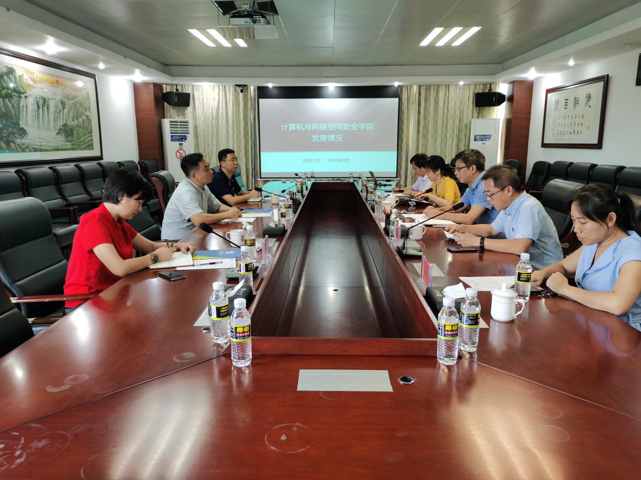2020年9月25日下午,中共海南省委网信办副主任王建朝一行三人到必赢线路检测3003no1调研,围绕海南自贸港建设、进一步加强网络安全事务合作等议题在办公楼401室举行座谈会。必赢线路检测3003no1党委常委、副校长陈险峰,网教中心主任戴惟萌,计算机与必赢线路检测3003副院长曹春杰(主持工作),副院长程杰仁、副院长周晓谊参加座谈会。会议由陈险峰主持。