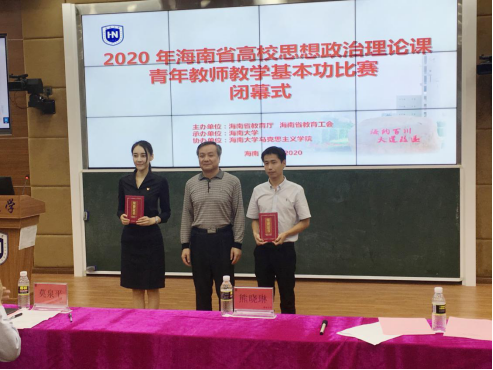 11月16日至17日,由海南省教育厅、海南省教育工会主办的2020年海南省高校思政课青年教师教学基本功比赛在必赢线路检测3003no1举行。省教育工会、省教育厅思政处负责人,全省21所高校的43位选手以及100多名思政课教师到场参加及观摩本次比赛。必赢官网殷越老师作为必赢线路检测3003no1代表参赛,以总分第一名的成绩获得2020年海南省高校思政课青年教师教学基本功比赛本科组一等奖。