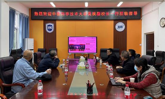 2023年1月18日,中国科学技术大学吴枫副校长等人一行莅临必赢线路检测3003,执行院长曹春杰、党总支书记陈广锐、副院长周晓谊、副院长胡昌慧及教师代表出席交流会。