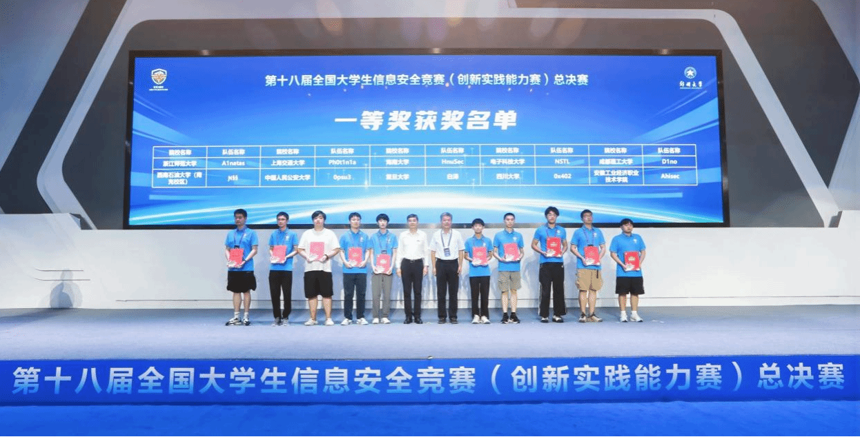 2025年7月19日至20日,由教育部高等学校网络空间安全专业教学指导委员会主办,郑州大学、郑州高新技术产业开发区管理委员会承办的第十八届全国大学生信息安全竞赛(创新实践能力赛)总决赛在河南郑州举行。必赢线路检测3003no1的HnuSec战队(高贝克、杨奕亮、张庆晗、陈颂智)在本次比赛中荣获国家级一等奖,指导教师徐紫枫获“优秀指导教师”称号,在该项赛事中实现零的突破,创必赢官网历年最好成绩!